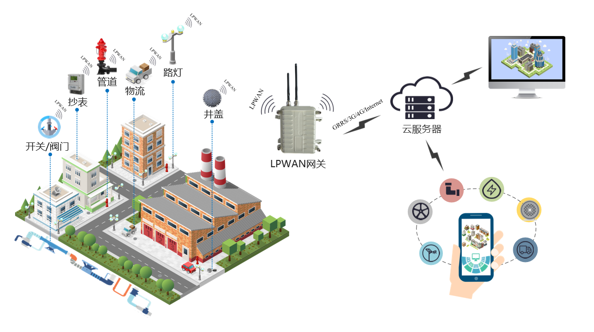 廣域監(jiān)控:基于無線傳感器及LPWAN通信模塊,根據(jù)預(yù)先設(shè)定報警規(guī)則,對園區(qū)市政井蓋、市政管道、市政消防栓等的異常情況進行防盜監(jiān)管,監(jiān)控范圍1-15KM。